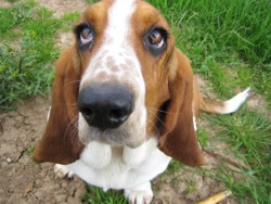Table clearer: Matilda was a great climber in younger days. And here she is below: the best eyes of any Basset I've seen.